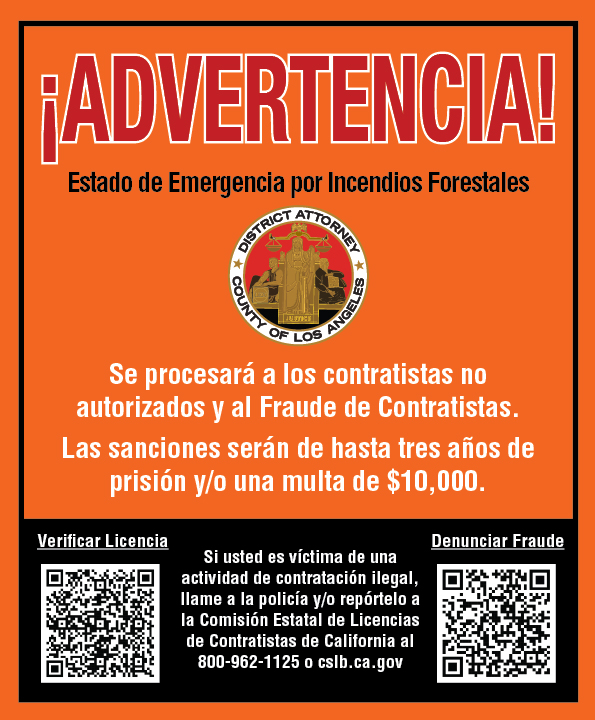We urge the communities impacted by the wildfires to stay vigilant and report unlicensed contractors who are taking advantage of this disaster and putting your safety and property at risk.