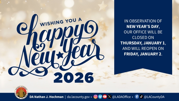 One year after taking office and restoring prosecutorial discretion and criminal accountability, Los Angeles County District Attorney Nathan J. Hochman is marking his first 365 days with an increase in public safety efforts, major takedowns of organized crime and burglary crews, busting the largest illegal cannabis operation in Los Angeles County history, aggressive prosecution of human traffickers, exonerating factually innocent convicted individuals, and filing thousands of Proposition 36 charges against repeat retail thieves. Those are just a few of the initiatives Hochman has successfully spearheaded since taking his oath of office last Dec. 3.Read more...